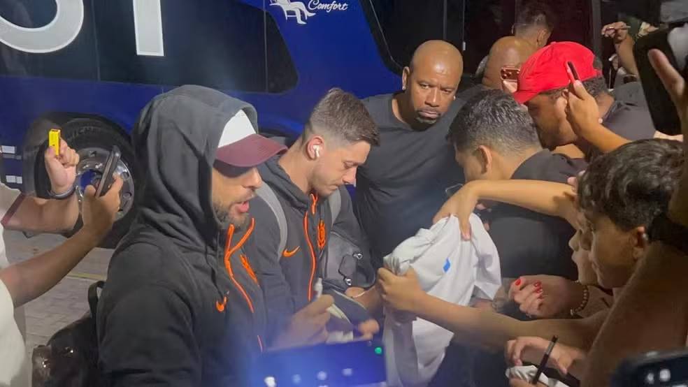 A delegação desembarcou em Florianópolis na noite de segunda-feira (20) com baixas importantes. Hugo Souza (dores musculares) e André (gripe) ficaram fora da viagem. Além deles, o clube não conta com João Pedro Tchoca, Charles, Memphis Depay, Gui Negão e Hugo, todos em recuperação de lesões.
